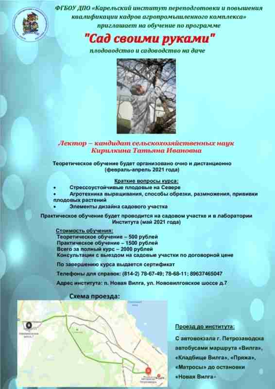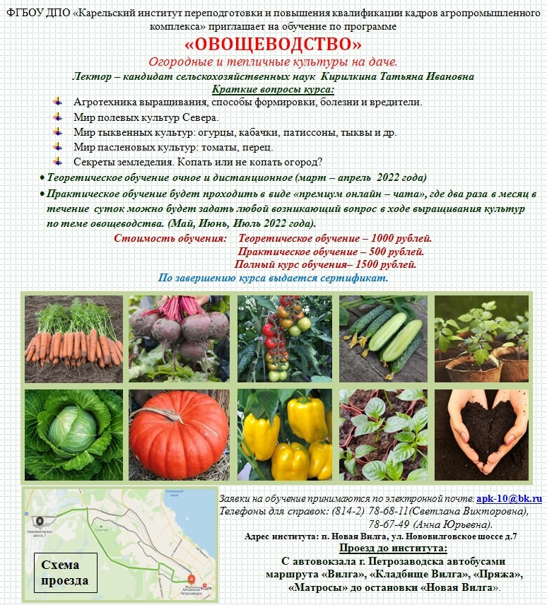 ФГБОУ ДПО «Карельский институт переподготовки и повышения квалификации кадров АПК» адрес: п. Новая Вилга, Нововилговское шоссе, 7.