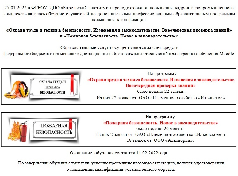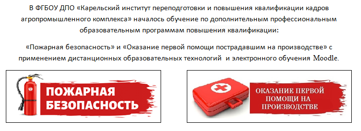 ФГБОУ ДПО «Карельский институт переподготовки и повышения квалификации кадров АПК» объявляет набор слушателей на дистанционное обучение (без отрыва от производства) по дополнительным профессиональным образовательным программам повышения квалификации: