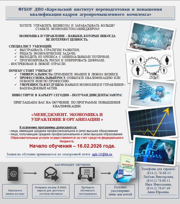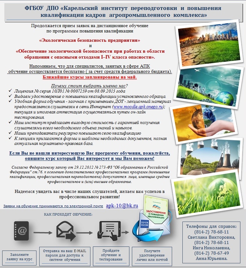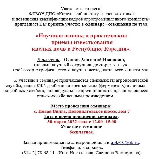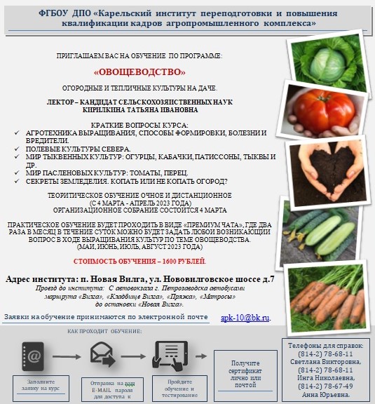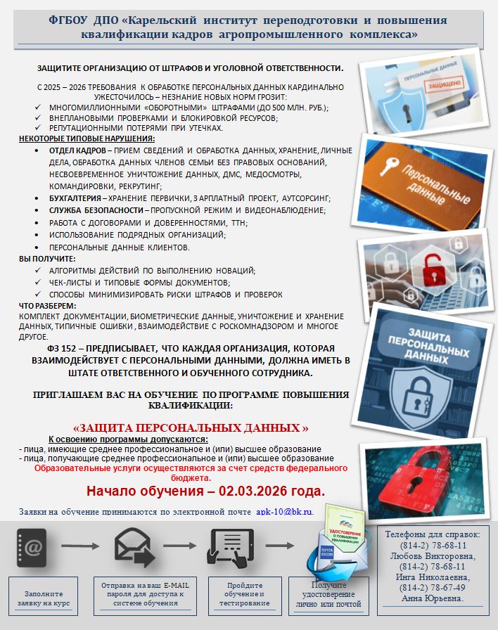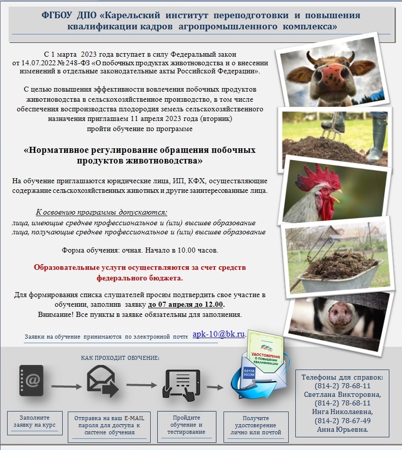 или ФГБОУ ДПО «Карельский институт переподготовки и повышения квалификации кадров АПК» - 8(8142) 78-67-48.