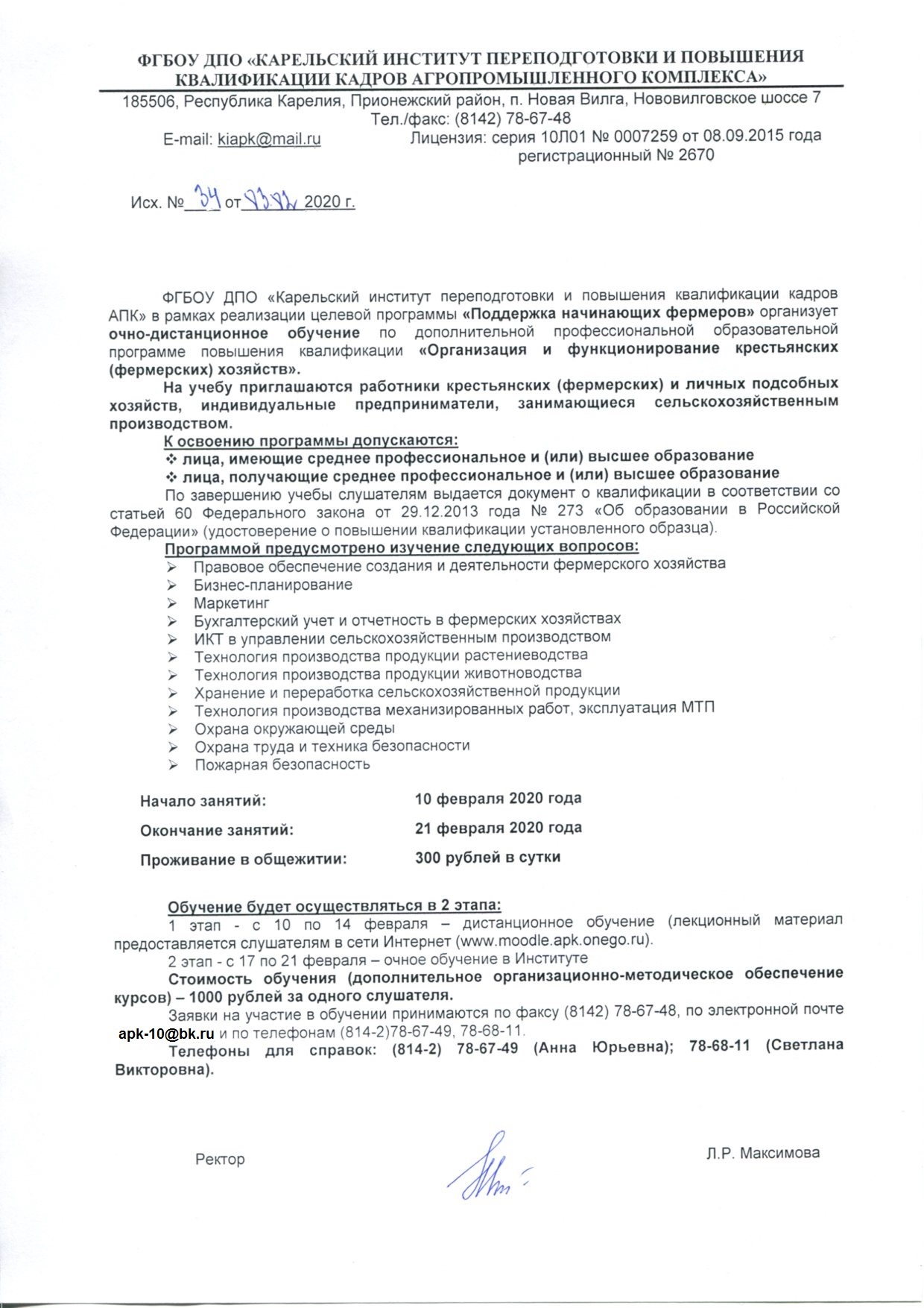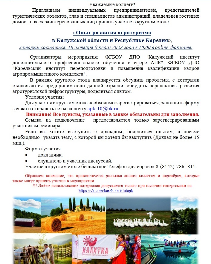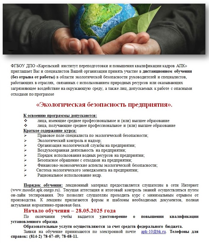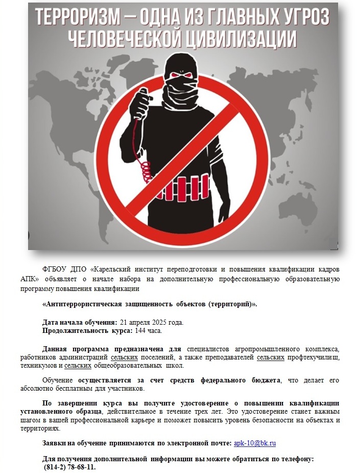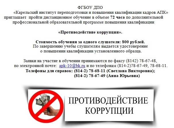 или ФГБОУ ДПО «Карельский институт переподготовки и повышения квалификации кадров АПК» - 8(8142) 78-67-48.