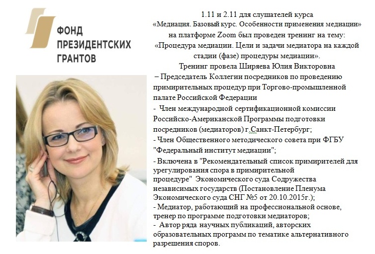 Преподавателем курсов выступила Рубина Инна Евгеньевна, к.ю.н, доцент кафедры гражданского права и