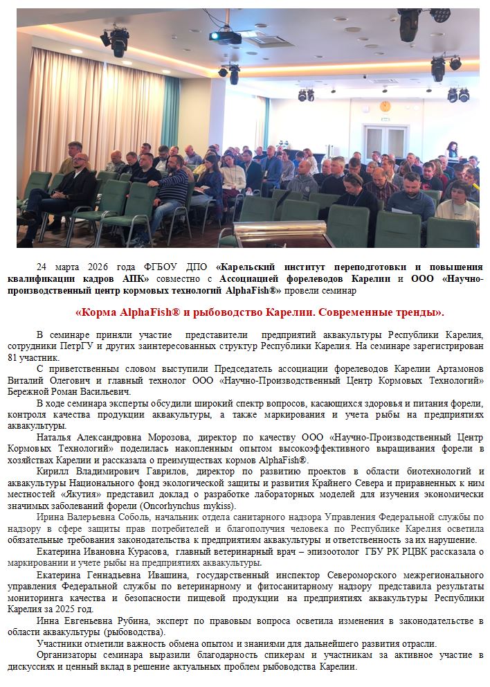 Выражаем огромную благодарность Ассоциации форелеводов Карелии, всем участникам обучения.